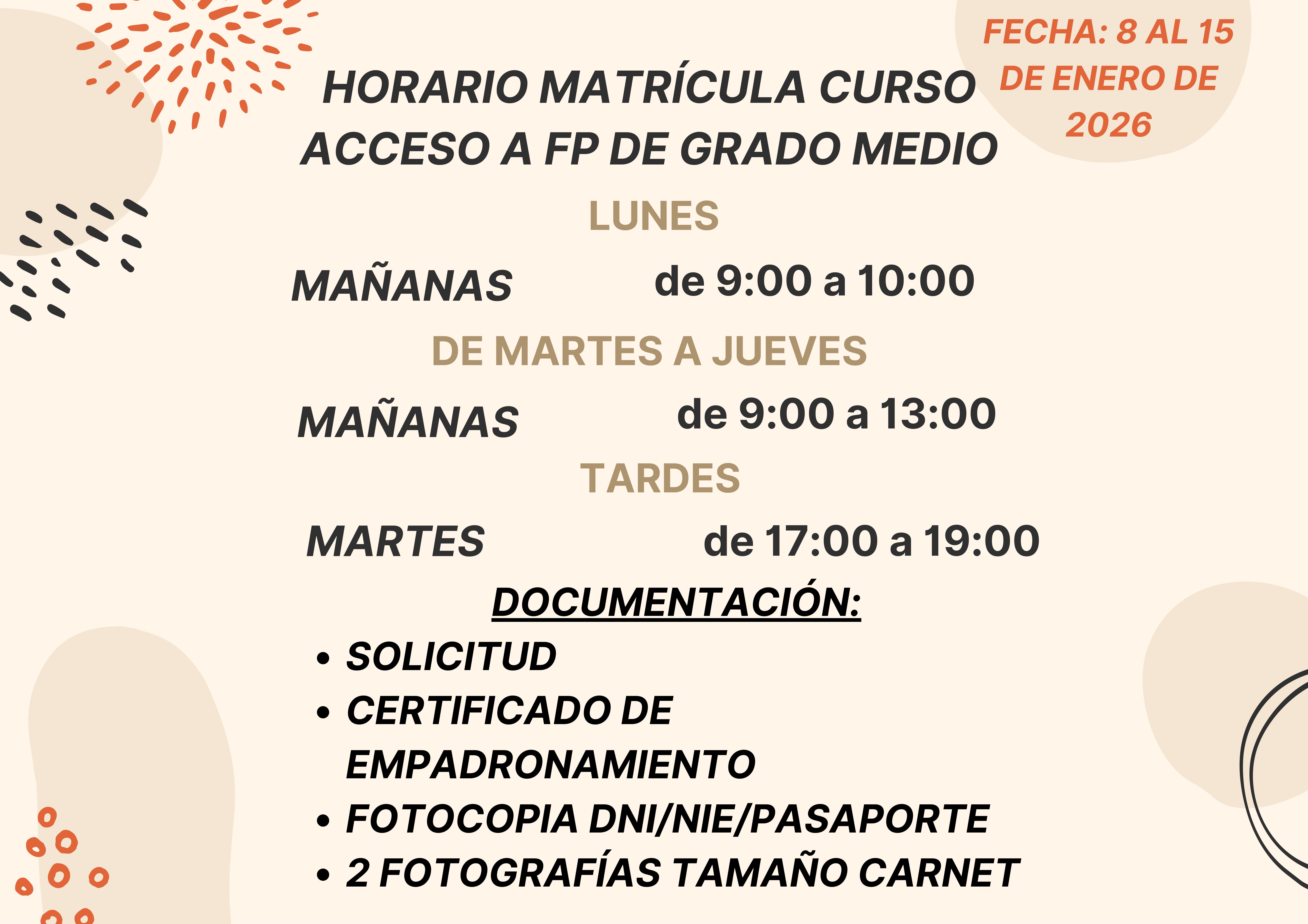 Información Admisión Curso Acceso a Grado Medio